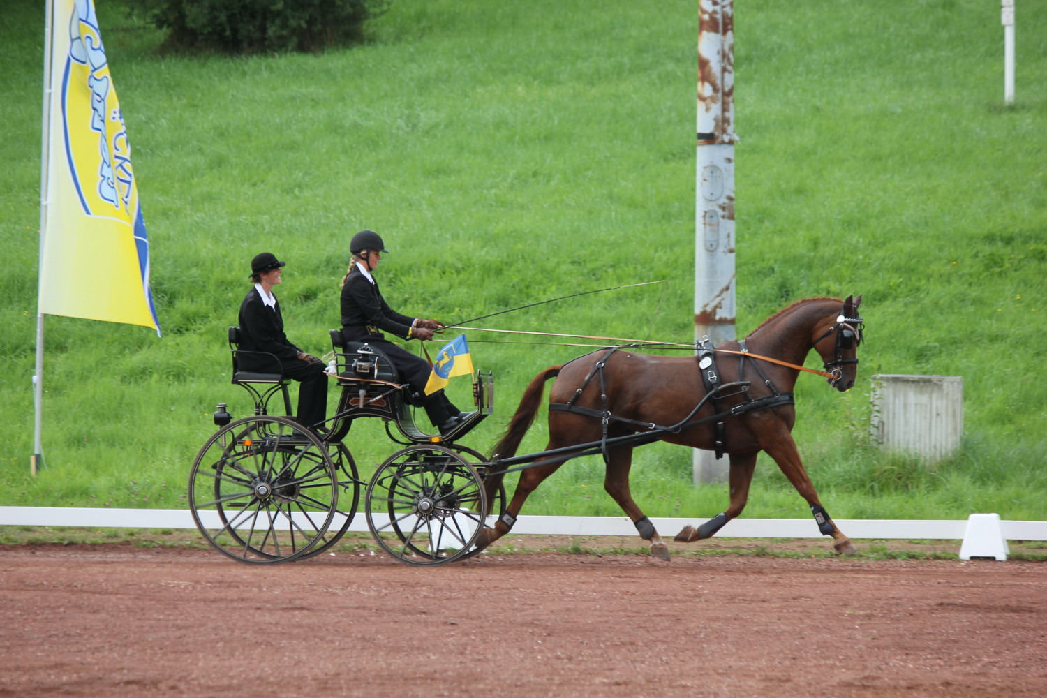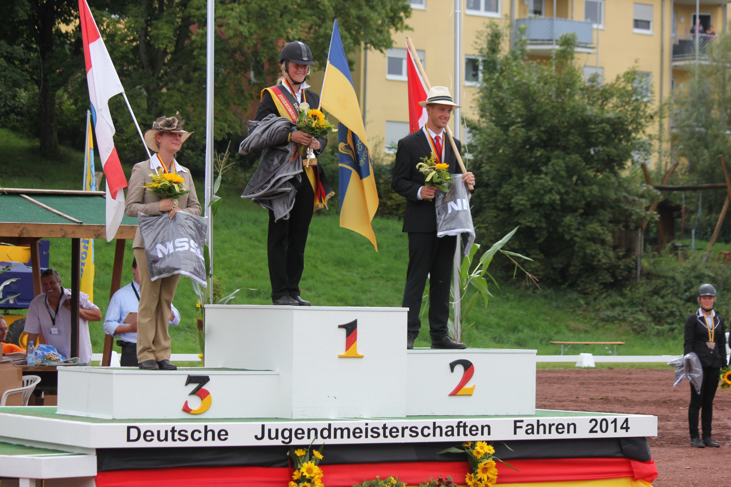 Nach einem guten 2. Platz beim Vormustern schaffte sie es zum zweiten Mal die Dressur auf der Jugendmeisterschaft für sich zu entscheiden. Sie ließ die amtierende Deutsche Meisterin Anika Geiger knapp hinter sich. Das Gelände war schwer und bergig. Alle sechs Hindernisse waren am Hang gebaut. Innerhalb der Hindernisse gab es Höhenunterschiede von 2 – 4 m. Unser Bobby war gut trainiert und konnte den 3. Platz erreichen.Nach dem Gelände hatte sie immer noch die Führung in der Hand und wollte diese auch nicht mehr abgeben. Jens Chladek war ihr dicht auf den Fersen. Einen Hindernisfehler konnte sie sich nicht erlauben. Jens Chladek traf einen Kegel und bekam auch noch Zeitfehler. Die Spannung stieg und Marcella war schon sehr aufgeregt. Auf bei ihr fiel ein Ball und die Zeit war auch überschritten. Aber es reichte trotzdem. Marcella ist die neue Deutsche Jugendmeisterin der Einspänner Pferde. Ebenfalls siegte auch die Mannschaft des PSV Hannover.